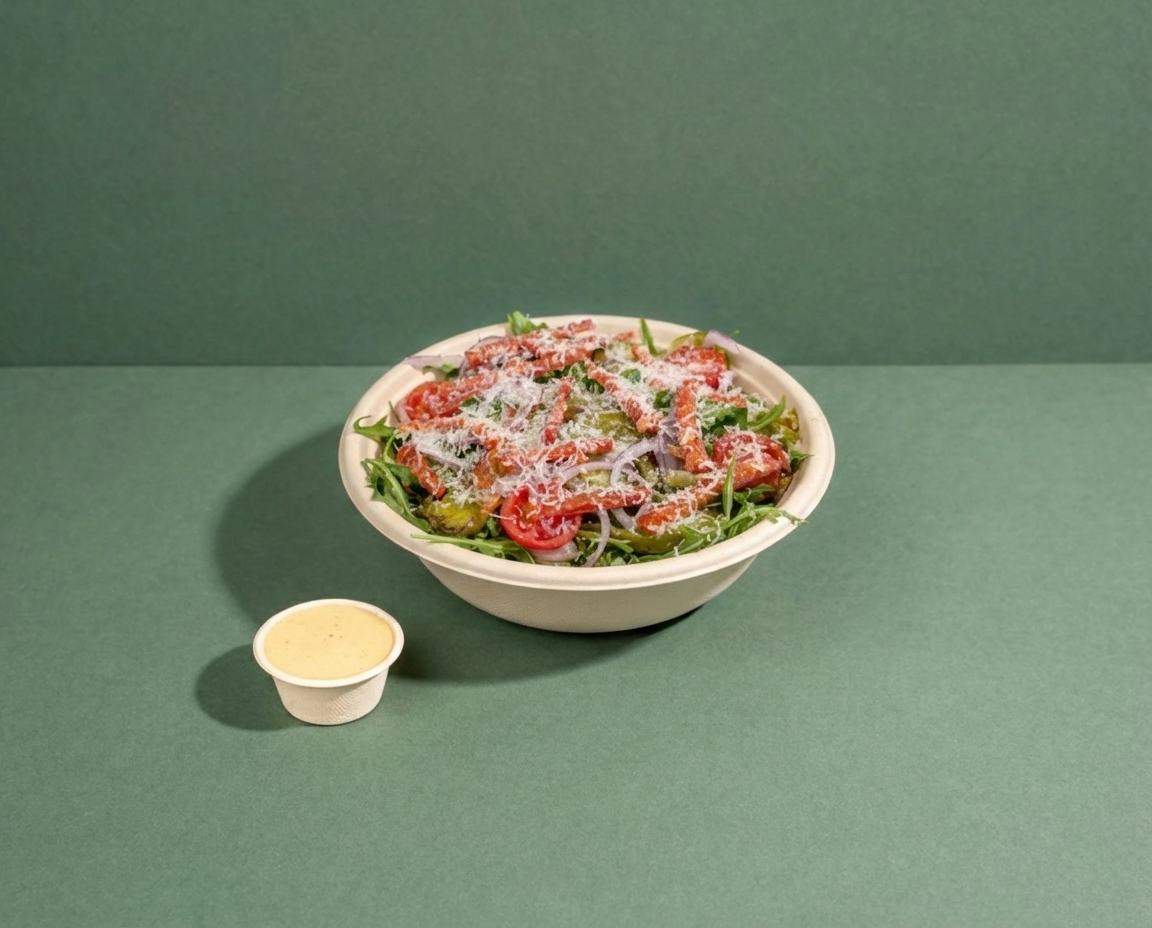 salami, tex veg, parmesan, red onion, cherry tomatoes, chopped cos, rocket