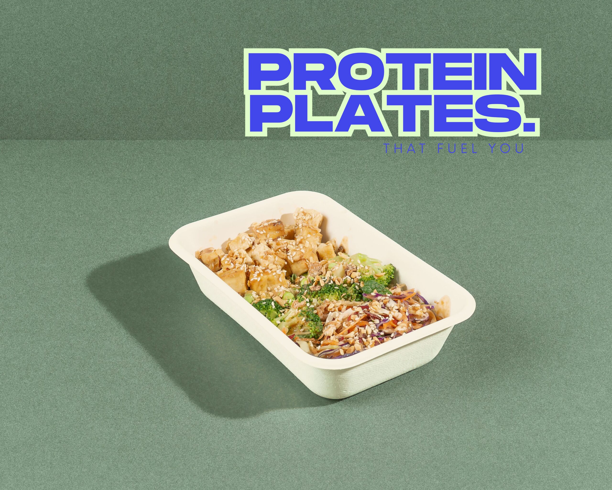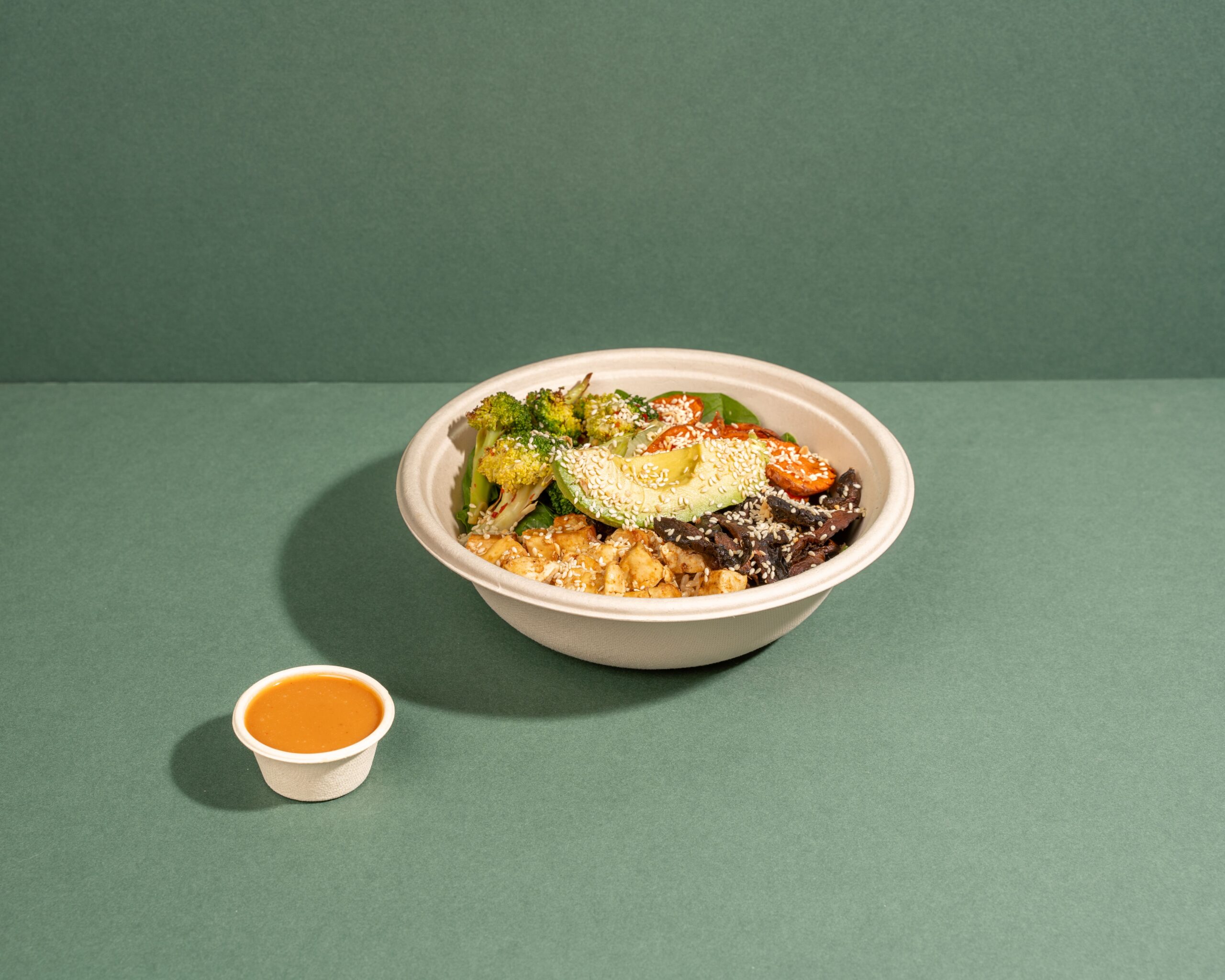 warm roasted tofu, warm shrooms, baby spinach, rainbow slaw, sweet potato, avocado, warm brown rice, spicy broccoli, toasted sesame seeds + crushed peanuts + crispy shallots