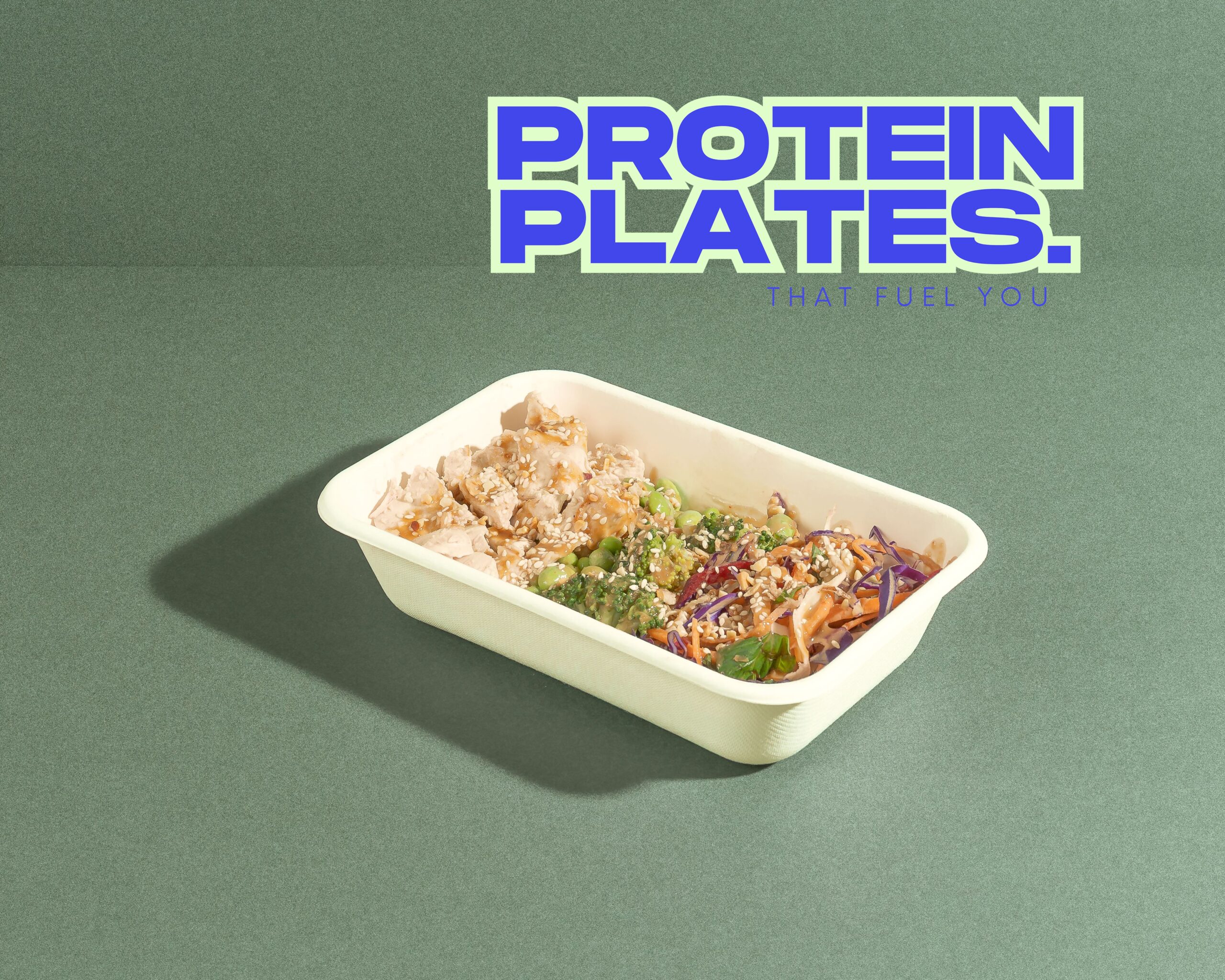 warm roasted chicken, edamame, vermicelli noodles, broccoli, bean shoots, coriander, spring onions, toasted almonds, toasted sesame seeds, crushed peanuts and crispy shallots, rainbow slaw, baby spinach