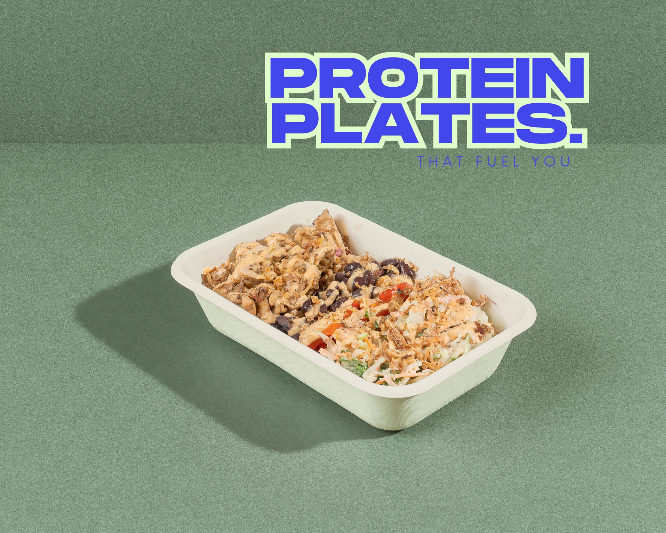 warm roasted chicken, brown rice, tex – veggies, sweet potato, tomato + onion mix, feta, spicy ranch pepitas